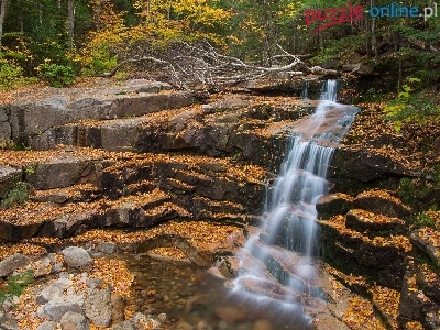 Puzzle Kamienie, Jesień, Wodospad, Liście