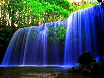 Puzzle Kamienie, Niebieski, Wodospad, Las