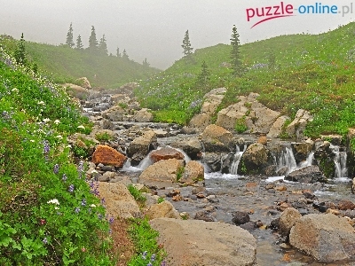 Puzzle Kamienie, Rzeczka, Wodospad, Wzgórza