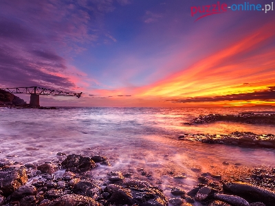 Puzzle Kamienie, Morze, Wybrzeże, Zachód słońca