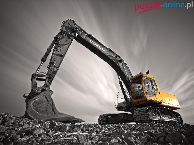 Puzzle Kamieniołom, Koparka, Volvo, Niebo