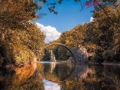 Saksonia, Most łukowy, Jezioro Rakotz, Kamienny, Niemcy, Park Rododendronów Kromlau, Most Diabła