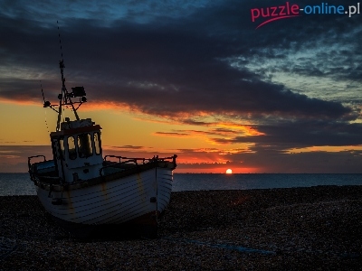 Kanał La Manche, Hrabstwo Kent, Stara, Rybacka, Wybrzeże, Morze, Anglia, Wschód Słońca, Łódź