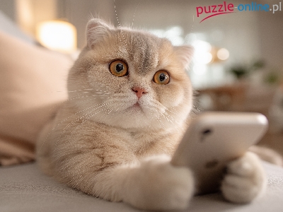 Komórka, Kot, Beżowy, Kanapa, Grafika AI, Telefon