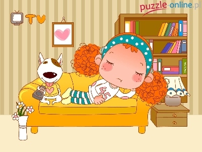 Puzzle Kanapa, Dziecko, Pies, Odpoczynek