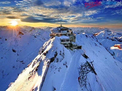 Kanton Berno, Restauracja Piz Gloria, Śnieg, Góra Schilthorn, Szwajcaria, Góry Alpy Zachodnie, Zima