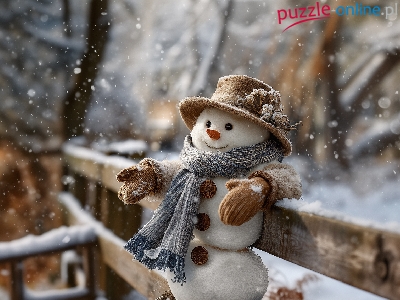 Zima, Płot, Bałwan, Kapelusz, Grafika AI, Szal