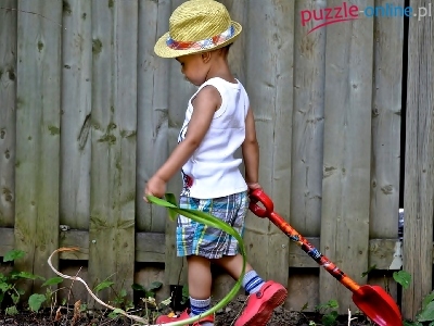 Puzzle Łopatka, Chłopiec, Kapelusz, Płot