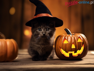 Dynie, Kot, Mały, Kapelusz, Halloween, Czarny