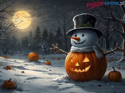 Kapelusz, Zima, Las, Śnieg, Dynia, Księżyc, Grafika, Bałwan, Halloween