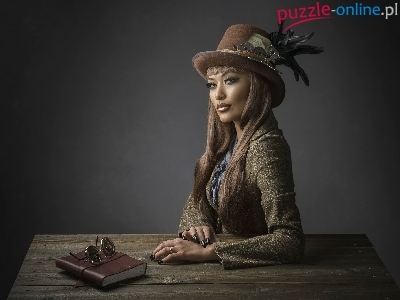 Kapelusz, Książka, Kobieta, Moda, Okulary