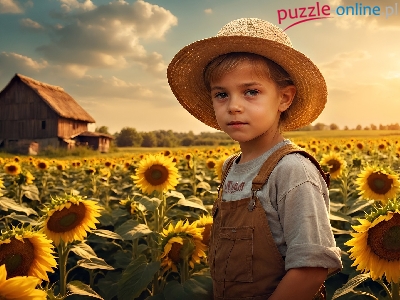 Słoneczniki, Chłopiec, Dziecko, Kapelusz, Szopa, Pole