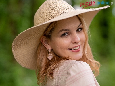 Kobieta, Kapelusz, Uśmiech, Kolczyki, Makijaż