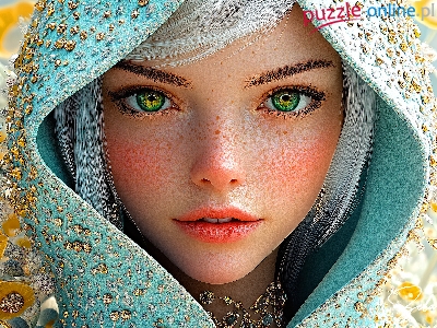 Biżuteria, Blondynka, Kobieta, Kaptur, Grafika, Kwiaty