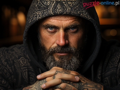 Mężczyzna, Kaptur, Zarost, Tatuaż, Dłonie