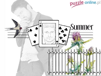Puzzle kwiat, karty, Gerard Butler