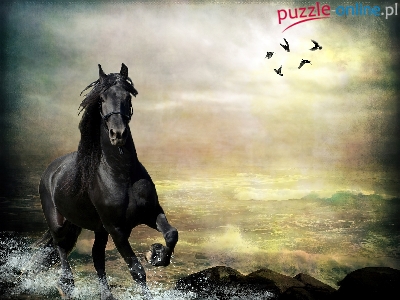 Puzzle Koń, Kary, Ptaki