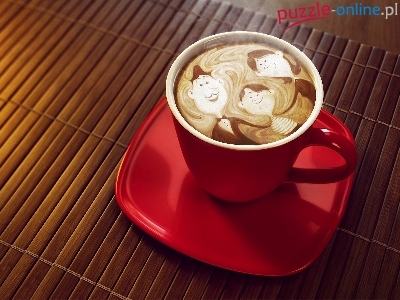 Kawa, Coffee Art, Czerwona, Filiżanka, Ludziki