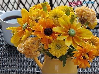 Puzzle Filiżanka, Kawa, Kwiaty
