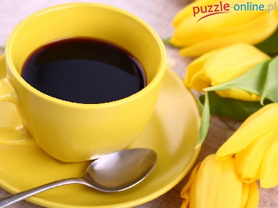 Puzzle Kawa, Żółta, Filiżanka, Tulipany