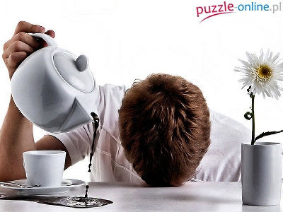 Puzzle Kawa, Śpiący, Mężczyzna, Kwiatek