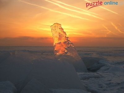 Puzzle Kawał, Zima, Zachód Słońca, Lodu