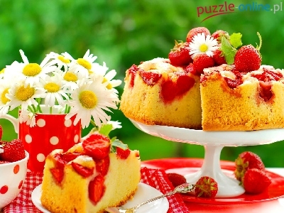 Puzzle Kawiaty, Ciasto, Truskawki, Talerze