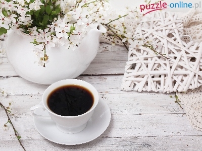 Kawy, Kwiaty, Filiżanka, Czarnej, Wazon