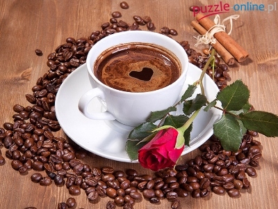 Puzzle Kawy, Róża, Filiżanka, Ziarna