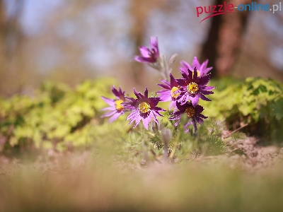Puzzle Kwiaty, Fioletowe, Sasanki, Kępka