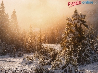 Ketchikan, Alaska, Zima, Świerki, Śnieg, Las państwowy, Stany Zjednoczone, Tongass National Forest, Mgła