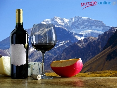 Puzzle Kieliszek, Wino, Ser, Góry