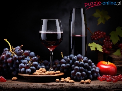Jabłka, Wino, Grafika, Kieliszek, Migdały, Winogrona