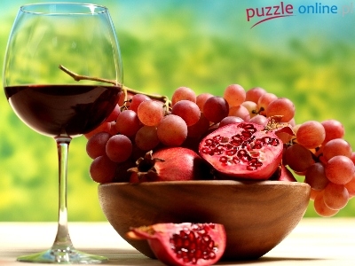 Puzzle Kieliszek, Granaty, Winogrona, Wino
