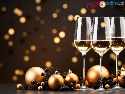 Nowy Rok, Szampan, Kieliszki, 2D, Bombki