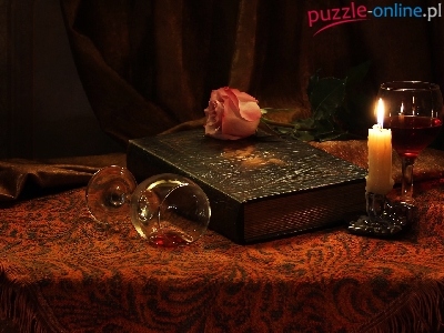 Kieliszki, Róża, Świeca, Kompozycja, Książka, Wino
