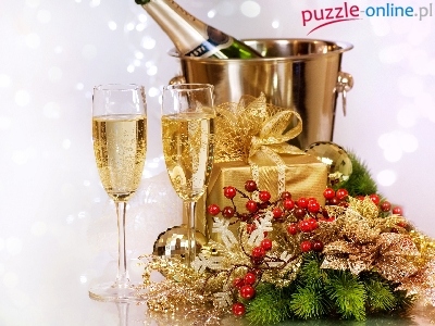 Puzzle Kieliszki, Nowy Rok, Szampan, Stroik