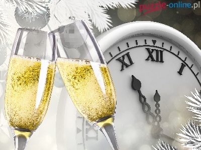 Puzzle Kieliszki, Sylwester, Szampan, Zegar