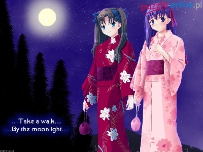 Puzzle kimono, Fate Stay Night, dziewczyny, księżyc