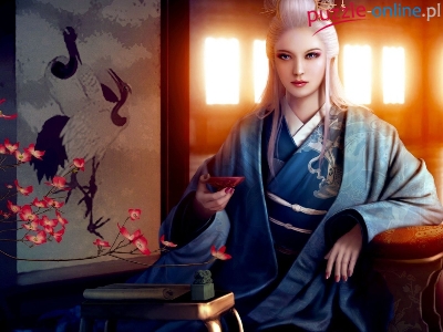 Kimono, Wiśni, Kobieta, Japonka, Kwiat