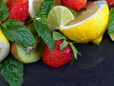 Kiwi, Cytryna, Mięta, Owoce, Truskawki, Listki