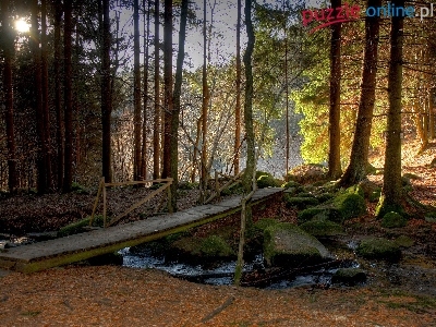 Kładka, Potok, Słońca, Las, Kamienie, Promienie
