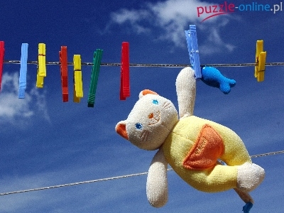 Klamerki, Miś, Niebo, Sznur, Zabawka