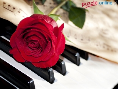 Puzzle Klawisze, Róża, Fortepian, Nutki