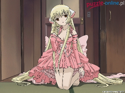 klęczy, kokarda, Chobits, dziewczyna, drzwi