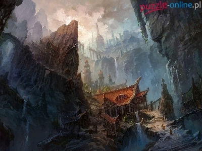 Puzzle Klify, Domki, Góry, Wodospad