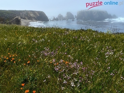 Puzzle Łąka, Wybrzeże, Klify, Kwiaty