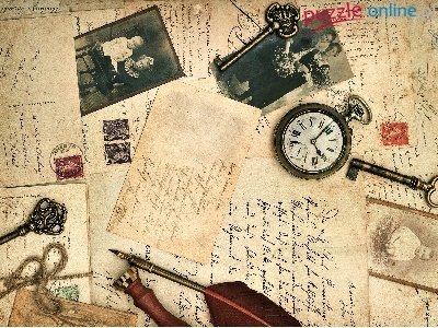 Klucze, Vintage, Listy, Zegarek Kieszonkowy, Pióra