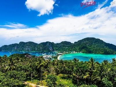 Plaża, Wyspa Ko Phi Phi Don, Roślinność, Tajlandia, Morze Andamańskie, Palmy