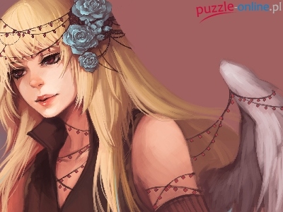 Puzzle Anioł, Kobieta, Kwiatki